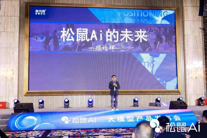图为:中国定位专家顾均辉亮相松鼠Ai大模型产品发布会