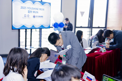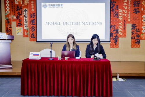 学生领袖助阵:主席助理Amelia(上海外国语大学附属外国语学校模联社长)凭借丰富的全球模联经验,为代表们提供流程指导,其专业表现获一致赞誉。