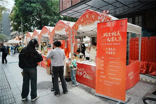 福田区作为深圳消费核心引擎,始终创新模式推动消费提质扩容。园岭街道以新春活动为契机,将“文化IP”与“舌尖经济”深度融合,释放消费新活力。八卦一路美食街化身“蛇全蛇美·元宵大集”,20余个摊位汇聚非遗美食与地方特产,各式各样丰富美食为元宵增添浓浓烟火气息。