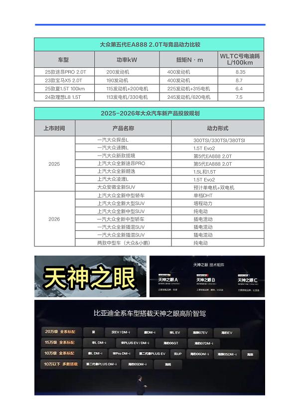 在非常关键的电气化赛道,中国车企与海外车企的差距不但没有缩小,反而在持续扩大:2017-2024年,中国车企的新能源渗透率持续提升,并逼近70%的高位,海外车企的整体新能源渗透率仅有13%,多数海外车企仍以燃油车绝对为主;2025年初大众不遗余力推广的EA888发动机,虽然对比同级别燃油车动力,的确有很大提升,但对比同级别车型搭载的电气化动力,扭矩、功率与能耗等核心指标几乎都不占优;2025-2026年大众等主流海外车企虽然也在加速布局新能源产品,但力度与进度都远远落后于中国车企,继2022年比亚迪全面转型为新能源车企后,2025-2026年将有更多的主流中国车企也会纷纷转型为新能源车企;