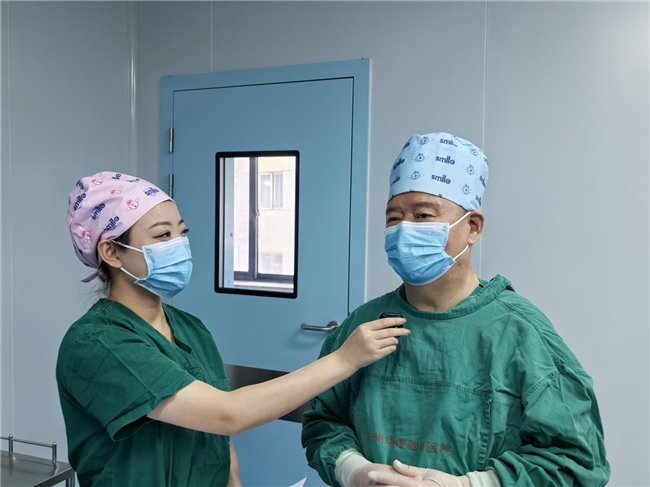 进入手术室后,张雨欣护士平躺在手术台上,医护人员迅速为她进行了全面的眼部消毒和铺巾等术前准备工作,确保手术环境处于无菌状态。随后,燕振国教授为雨欣护士长的眼部滴入了适量的麻醉眼药水,以减轻术中可能产生的不适。