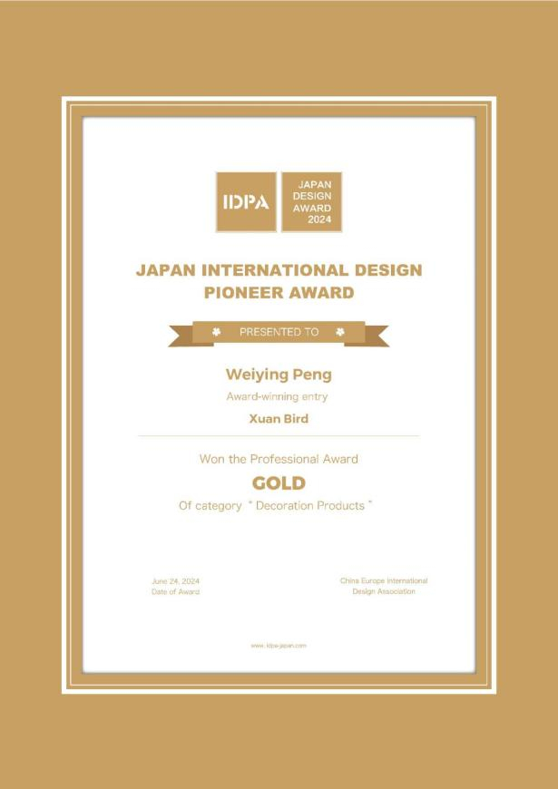 日本IDPA国际先锋设计大奖创立于2018年,由CEIDA中欧国际设计协会、CIID88中国国际室内设计网等权威机构联合主办,聚焦建筑、室内、产品三大设计领域的前沿探索。本届评审团特别指出,《玄鸟》以"跨越时空的文化对话"实现传统工艺的当代转译,彰显了中国设计在全球语境下的独特话语体系。