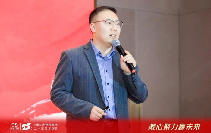劲松口腔医疗集团董事长李民为大会致辞,对劲松口腔2024年取得的成绩给予了高度的肯定,并展望了未来的发展方向。