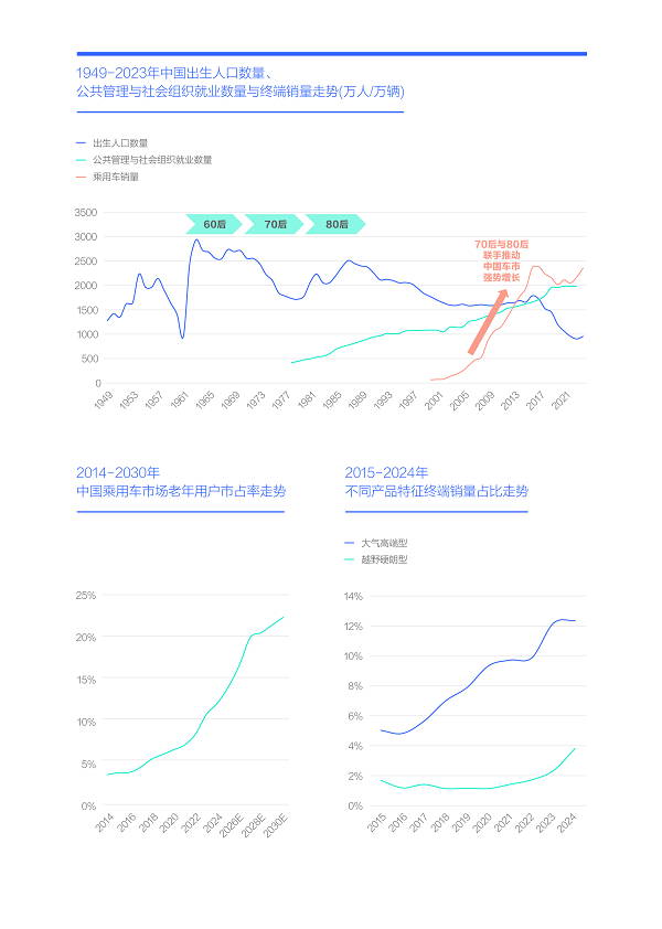 2024年中国车市的越野诉求达9.92%,其中老年诉求最显著,以及老年车市快速壮大,正培育出“新老头乐车市”