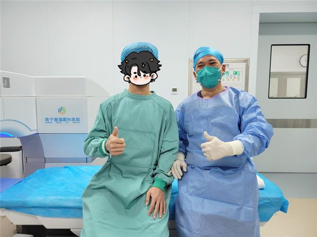 术前,小卢右眼近视425度,左眼近视同样为425度,这对于即将参加征兵的他来说无疑是一个巨大的障碍。观摩会上,南宁普瑞眼科屈光手术专科副主任苏华主任亲自操刀,以其丰富的临床经验和精湛的手术技巧,为与会者演示了全飞秒手术的全过程,也为小曾成功完成近视手术。