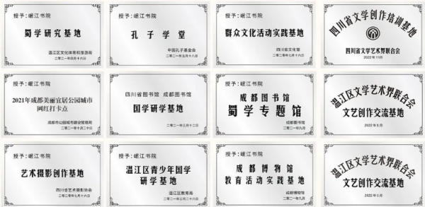 岷江书院在文化的传承与传播上得到了社会各界的认可,获省市文联、省市图书馆、省市博物馆、省市文化馆等十余家省市文化机构授牌。