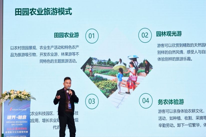 经济学博士、北大光华民院教研所研究员蔡霖在演讲中介绍V-Chain火山公链的讲解。通过V-Chain火山公链连接现实世界的资产,并实现这些资产的数字化,不仅能有效推动资产的流转和价值实现,还将进一步推动区块链技术在现实经济中的应用。