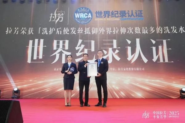 拉芳发芯修护洗发水可令发丝抵御1,000,000+次拉伸而不断,此项纪录荣获世界纪录认证机构(WRCA)认证,并于大会现场颁发世界纪录认证证书,这一殊荣不仅是对拉芳品牌科研实力的肯定,更是对中国美妆个护行业创新能力的国际认可。