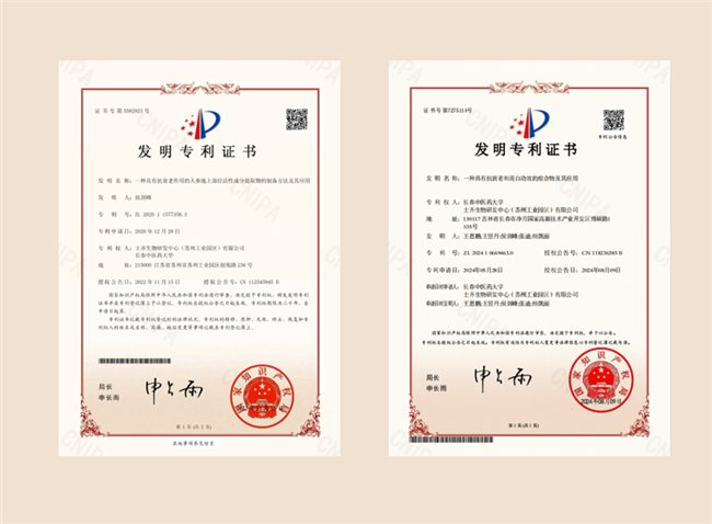 1.“一种具有抗衰老作用的人参地上部位活性成分提取专利,能精准萃取出人参地上部位中蕴含的高效抗衰老成分,大幅提升提取效率(专利号:ZL202011577356.3)