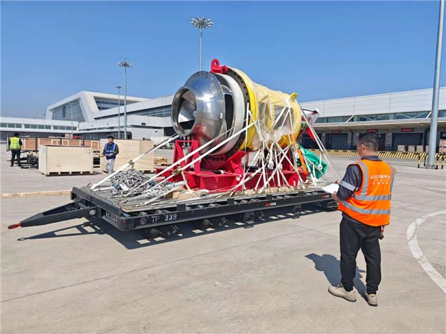 3月20日,鄂州顺嘉国际货站再次接到超大超重的器械货物保障任务,共7件总重32.5吨,单件货物重量最大约15吨。该批货物体积大、器械裸运操作复杂,顺嘉国际货站第一时间制定超限货物专项保障方案并使用吊车组装完成,从安全、精密、牢固等方面确保超大超重货物从收运、组板和出库等各环节顺利完成。3月22日6件货物分批装载于EY9681和O3155航班飞往目的站阿布扎比。