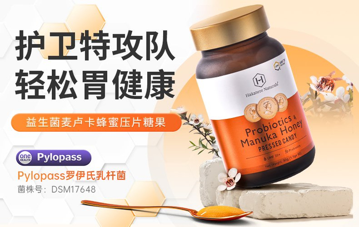此次临床试验由上海市静安区区域医疗中心临床营养科及上海健康医学院健康与公共卫生学院主导,采用前瞻性、单臂研究设计,招募了33名幽门螺杆菌感染患者,进行了为期8-12周的干预观察。研究结果显示,参与者在服用麦卢卡UMF20+益生菌压片糖果后,幽门螺杆菌检测数据显著降低。这一结果表明,麦卢卡蜂蜜中的甲基乙二醛(MGO)与罗伊氏乳杆菌的协同作用,能够有效清除幽门螺杆菌,维护肠道健康。