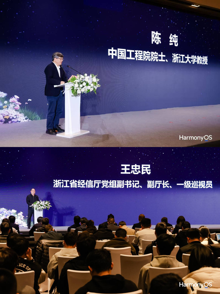 浙江省鸿蒙生态的发展,不仅依托于政策支持和创新科技产业基础,还离不开地域人才优势。浙江大学联合华为开设“鸿蒙开发精英班”,一年培养超千位复合型人才。陈纯院士做开场致辞:“浙江作为全国首个‘国家信息经济示范区’,需要携手鸿蒙这样的领军力量,着重在三个方向发力:一是加快培育鸿蒙开发者,夯实人才基础;二是推动浙江企业接入鸿蒙生态,形成行业标杆;三是建设‘鸿蒙+’创新联合体,在智能网联汽车等场景打造世界级应用范例。希望以本次论坛为起点,将浙江打造成全国的‘鸿蒙样板间’,为中国式现代化贡献浙江经验。”