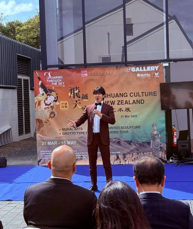 2025年3月31日,备受瞩目的“飞越天空 – 敦煌艺术展”(Soaring Through The Sky – Dunhuang Art Exhibition)在新西兰旺阿雷市(Whangārei)的Geoff Wilson Gallery盛大开幕。此次活动由敦煌研究院主办,中国驻奥克兰总领事馆支持,奥克兰中国文化中心和北方理工学院承办。