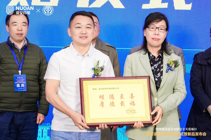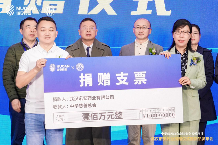4月12日,在武汉东湖之滨东湖听涛景区,武汉诺安药业向中华慈善总会捐赠100万元,助力皮肤安全关爱项目。此次捐赠既是武汉诺安药业践行社会责任的暖心缩影,更延续了其二十年公益初心:以守护百姓皮肤健康为使命,助力皮肤医疗公益事业高质量发展。