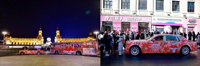 东北经典大花定制款劳斯莱斯、免费摆渡大暖巴,结合了东北经典特色与时尚潮流元素的精彩走秀活动,以及“夺金送百斤” 哈尔滨专属门店活动,都让海内外冰城游客和消费者的身心都能感受到都市丽人的暖意,更是传递了国民内衣品牌的新春祝福。