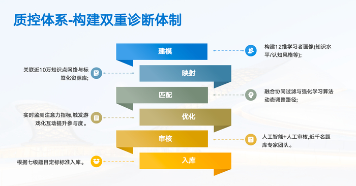 金英杰副总裁、产品与服务中心负责人马博元表示,金题库独创“专家网络+数据驱动+质控体系”三位一体的保障机制,建立起从建模、映射、匹配、优化、审核到入库的6步流程,让每道题都经过“专家三审+编辑三审”的双保险机制,从严把控质量的同时,使用AI动态抓取最新诊疗指南与考试大纲,让题库更新迭代速度更快;再借助星云系统的智能考点热度分析,使题目预测更接近真实考试情况。同时,借助AI技术与学习行为数据,为每位学员定制个性化的学习路径和学习计划,提供更为丰富和精准的学习资源,从而实现个性化的学情诊断、个性化的学习规划及个性化的题库辅学,帮助更多的学员高效学习,助力医考通关。
