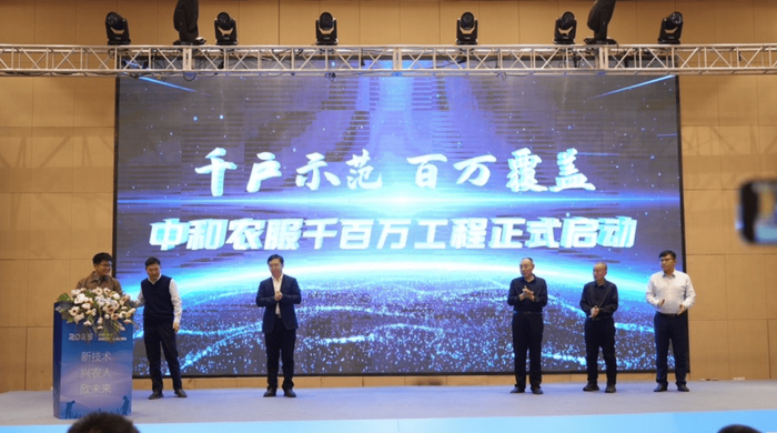 会议最后,中和农服“千百万工程”也正式发布。该工程作为中和农服推动水肥一体化技术和液体肥应用落地和农业绿色转型的蓝图,计划在未来三年以新型液体肥+智能施肥技术为核心,通过千户示范、百万覆盖的阶梯式推进策略完成实践验证—模式创新—生态共赢三大跨越,最终实现百万亩级别的规模化应用,树立行业标准,助力农业绿色高效发展、促进农民增产增收。